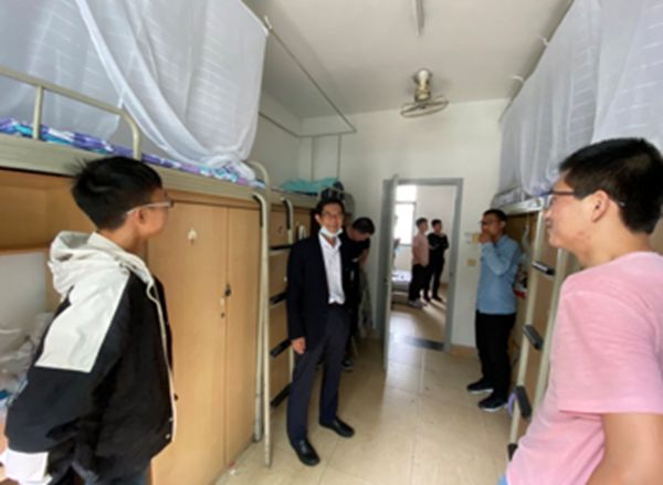 金秋九月,四川大学化工学院又迎来了一批新生。2020年9月22日中午,为进一步了解我院新生住宿和生活情况,加强学院与新生的交流,督促新生维持良好的宿舍环境、营造积极向上的宿舍氛围,引领新生尽快适应新生活新环境,让新生充分感受到我院领导、老师对新同学的关怀,best365中国官方网站党委书记庞国伟、院长赵长生、党委副书记姜利寒、副院长钮大文、化学工程系系主任袁绍军等领导及部分教师代表走访了学生寝室,对2020级新生同学开展慰问。