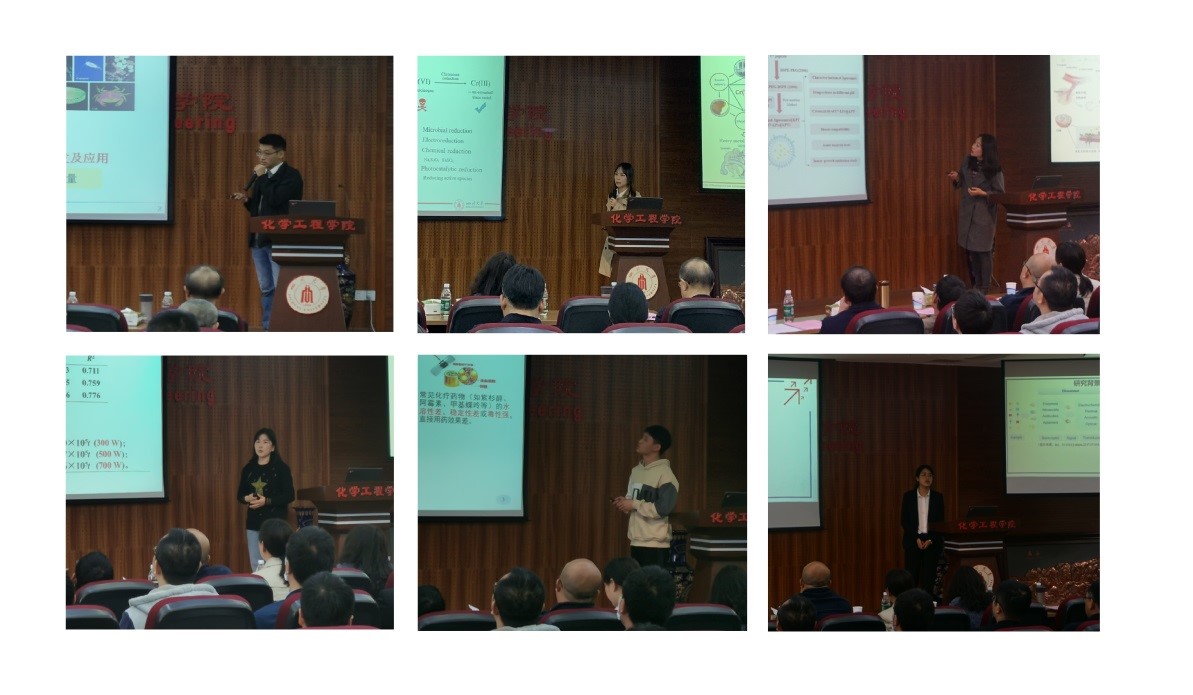 随后,张灵等10位硕士研究生依次进行了精彩的报告,研究主题多样,包括新的检测方法、新型吸附材料、新型抗菌材料和新型潜在药物小分子的筛选等。最后,经过学术委员会的一致评定,彭林彩和周慧荣获一等奖,王旭倩、徐志朗、卢涛、徐锦芳、赵良燊荣获二等奖,乔亮智、张双双、郭莹莹、张灵、吴玉婷、王文静、韩淼、梁超、吴进勇获三等奖。