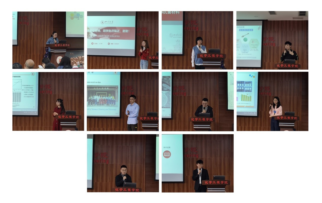 论坛正式开始后,博士组的同学们依次进行了精彩的报告。杜开峰教授课题组乔亮智的《多糖基微球色谱接枝的设计制备及构效关系研究》,张永奎教授课题组王旭倩的《氮化碳改性的生物合成羟基硫酸铁复合材料用于高效光催化还原Cr(VI)》,赵刚教授课题组张双双的《T7肽修饰的pH敏感性脂质体负载拉帕替尼及其抗肿瘤性能研究》,宋航教授课题组郭莹莹的《超声波对黑茶篦子多糖的降解规律和抗氧化影响的探究》,穆畅道教授课题组徐志朗的《pH响应型羟乙基淀粉纳米载药系统的构建及其抗肿瘤性能研究》和宋航教授课题组彭林彩的《基于磁性材料和碳纳米管改性的葡萄糖生物传感器的研究》,均得到与会专家的一致好评,演讲的同学和台下的老师互动交流频繁。这六个报告从不同的方面展示了同学们的研究思路和方法,为在场的低年级同学提高了很好的借鉴。