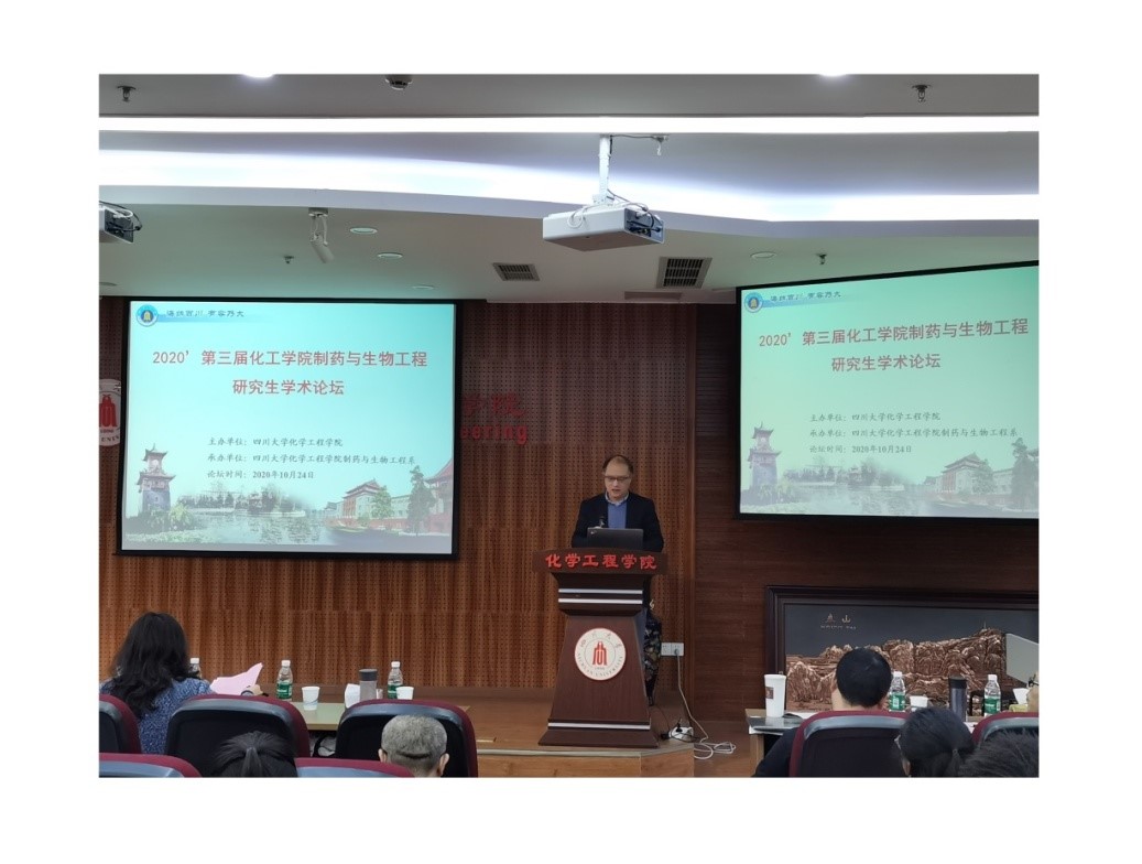 为了落实教育部新时代高校改革要求,提高人才培养质量,2020年10月24日,2020’第三届四川大学化工学院制药与生物工程研究生学术论坛在四川大学正行楼313报告厅顺利举行。论坛学术委员会主席宋航教授,学术委员会委员李延芳教授,杜开峰教授,马丽芳副教授,李子成副教授,黄文才副教授,杨坤副教授,李德富副教授,刘文彬副教授,姚长洪副教授,王雅博副研究员,陈靖副研究员,葛黎明老师,李盼禹老师,孙巧媚老师以及制药与生物工程系研究生100余人参加了本次论坛。此外,本次论坛还特别邀请了西南民族大学王晓玲教授,成都中医药大学崔名全教授,西华大学杨文宇教授,成都理工大学何泽教授,西南交通大学谭欢教授,西南民族大学李新莹教授作为本次论坛的特邀嘉宾。
