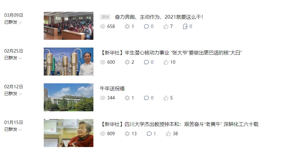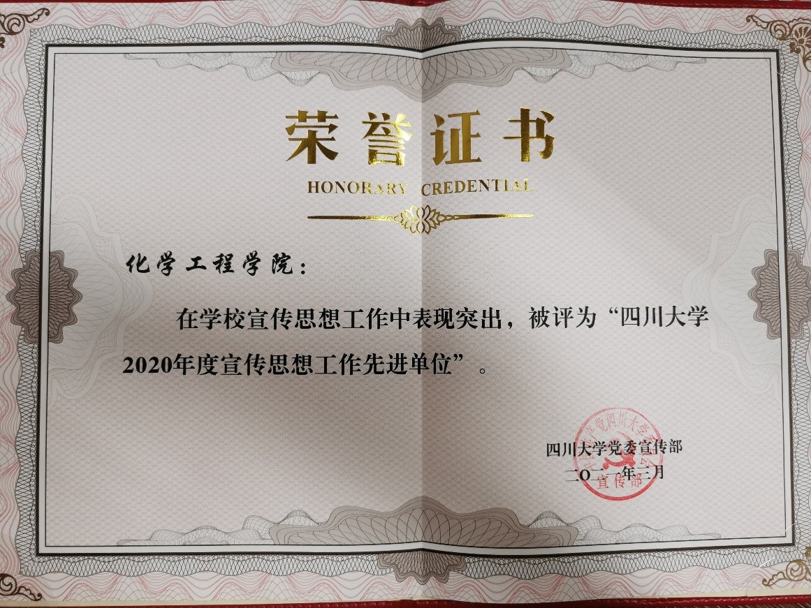 2020年以来,best365中国官方网站以习近平新时代中国特色社会主义思想为指导,推进党的十九届五中全会精神学习宣传入脑入心,弘扬抗疫精神,围绕新工科的发展思路和第五轮学科评估及“双一流”建设中期验收两项大考,紧密结合学院工作实际,围绕重大事件和重要时间节点,传统媒体与新媒体融合出击,主动积极作为,推出“学科建设”“课题组介绍”“优秀毕业生”等系列宣传报道,推动课堂“活”起来,活动“热”起来,师生“实”起来,获得了师生的一致好评。2020年,新华社宣传报道学院杰出教授钟本和先生艰苦奋斗“老黄牛”精神,学校官方网站和专题专栏采用学院稿件32篇,学院网站和“川大化工”微信公众号发布新闻动态400余篇,以“感谢感恩”为主题加强江安校区卓工楼文化建设,宣传思想工作特色鲜明、亮点纷呈。