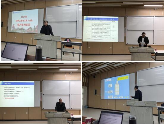 在动员大会上,化工系主任袁绍军教授指出,学院、系领导高度重视大学生理论结合实际的能力培养,生产实习是化工专业学生工程实践能力培养的重要手段,同学们一定要珍惜来之不易的实习机会。吴振国老师对本次实习的行程安排、现场装置、住宿等环节进行了介绍,强调了毕业要求指标点与课程目标的对应关系。陈建钧老师向大家强调了化工生产实习课程的重要性,详细介绍了合成氨工艺和生产装置。顾武安老师对同学们进行了安全教育,强调了在实训中的规章制度和注意事项,并要求大家做好个人疫情防护。