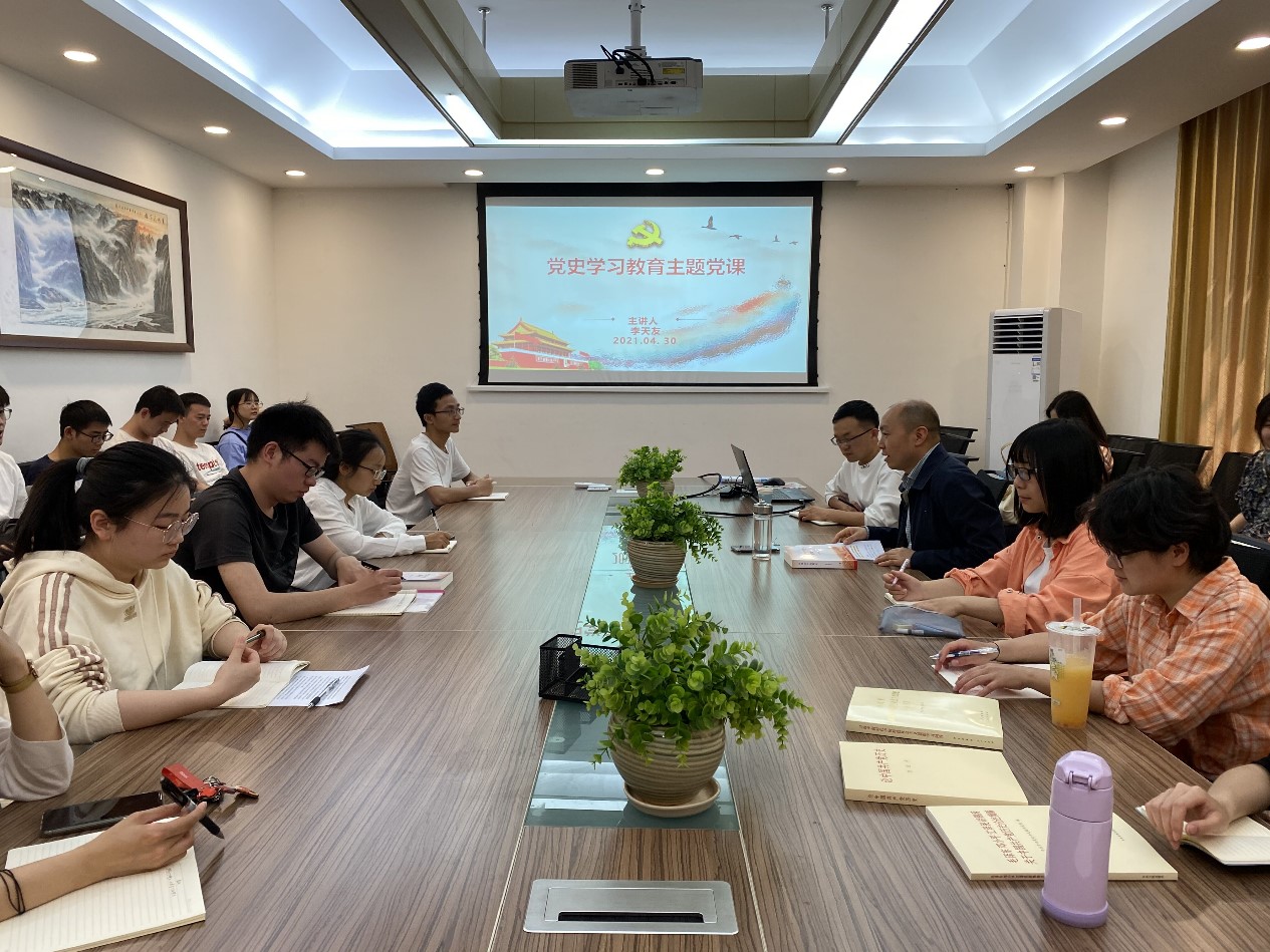 为贯彻落实中央重要精神和学校党委关于党史学习教育工作部署,2021年4月30日,学院党委副书记、纪委书记李天友到联系的学院研究生第三党支部开展党史学习教育辅导报告。辅导报告在望江校区化工楼227会议室召开,支部书记把余德主持会议,全体支部党员参加会议。