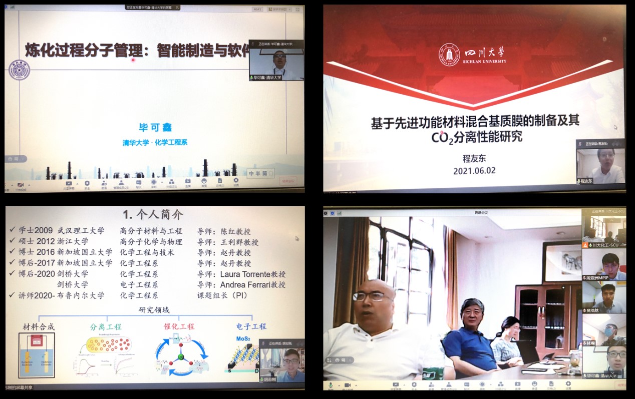 best365中国官方网站于2021年6月2日在望江校区化工楼227会议室,成功召开了四川大学第九届全球青年学者论坛——化工分论坛。来自美国西北大学、阿卜杜拉国王科技大学、英国布鲁内尔大学、澳大利亚蒙纳什大学、新加坡国立大学、荷兰代尔夫特理工大学和清华大学等全球一流高校和科研院所的20多位优秀青年学者与我院师生相聚云端,开展了线上的精彩学术报告分享与学术交流。本次云论坛由我院副院长钮大文教授主持。