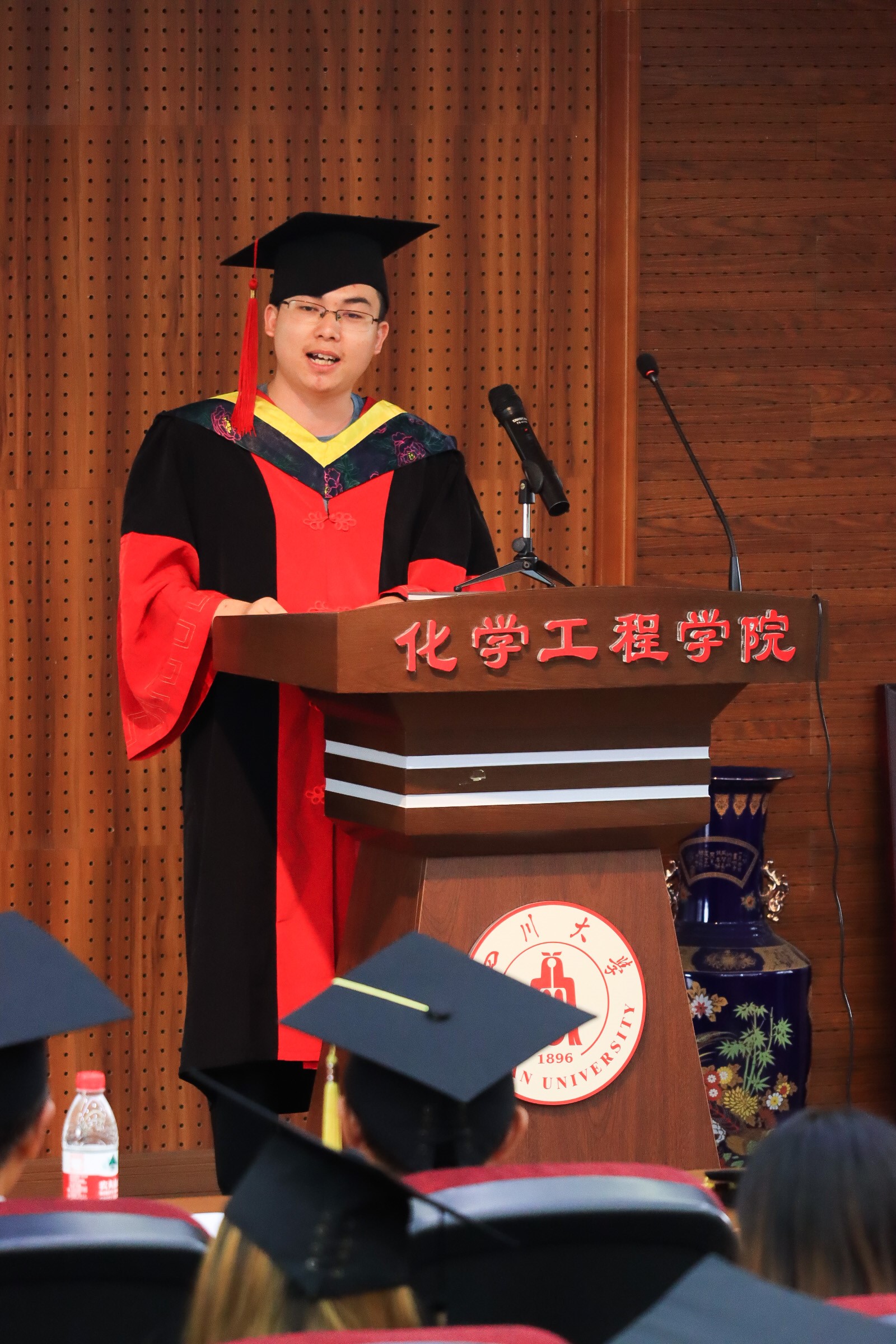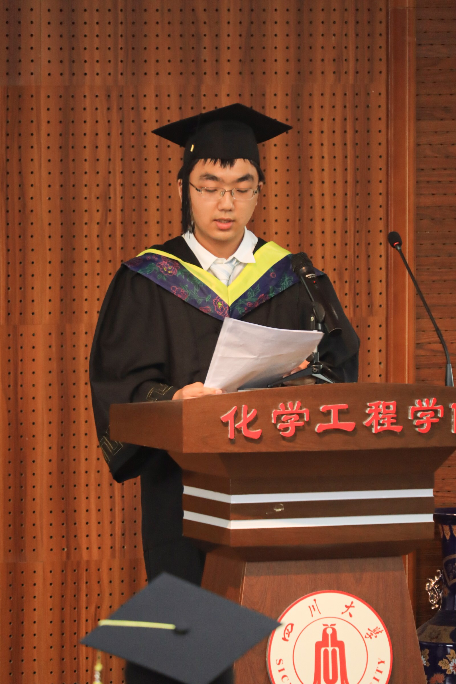 毕业本科生学生代表张宇豪发言,讲述了自己的大学生活。大学四年,是有长度的。对于书本的理解随着年龄的增长和阅历的丰富而逐渐深刻,读书是一辈子的事。大学四年,是有宽度的。川大四载不只是课堂的一隅,而是生活中的方方面面。大学四年,同样是有高度的。面对更加优秀的人,渐渐明白川大学子背后默默付出的努力。