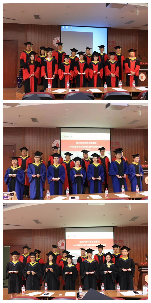 2021年6月24日,四川大学best365中国官方网站2021届毕业典礼暨学位授予仪式在望江校区化工学院楼313报告厅隆重举行。学院党委书记庞国伟,院长赵长生,四川大学杰出教授钟本和,教授委员会主席李象远,过程装备与安全工程系主任伍勇,应用化学系主任朱权,学生教导员老师李川娜,本科生辅导员老师李珍珍,研究生辅导员老师李颖丽,兼职辅导员于洋出席典礼,典礼由学院党委副书记姜利寒主持。