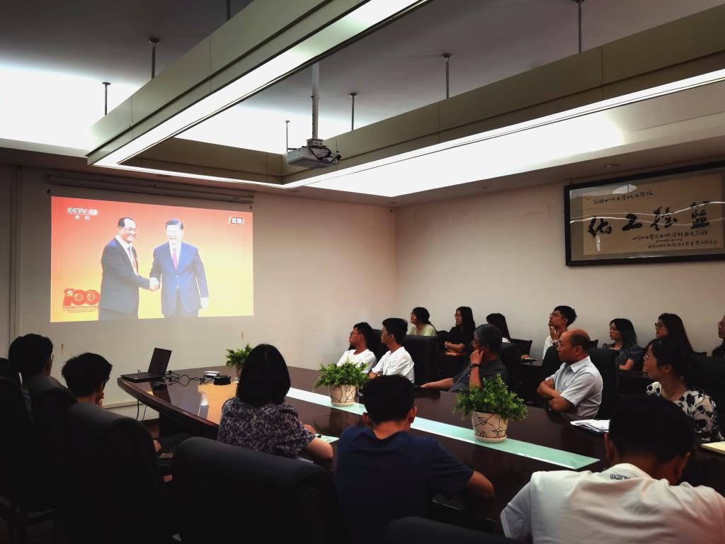 为及时传达学习习近平总书记讲话精神,教育引导广大领导干部和师生党员向优秀学习,崇尚先进,见贤思齐,28日晚上,学院党政办通过微信群、QQ群等多种方式面向全体党员发出了收听收看通知。29日上午9点,best365中国官方网站在望江校区化工楼235会议室设置会场,组织党员集体收听收看仪式盛况。29日上午10点,全体在家党政领导班子成员、支部书记、党员师生等集体收看了“七一勋章”颁授仪式现场直播。
