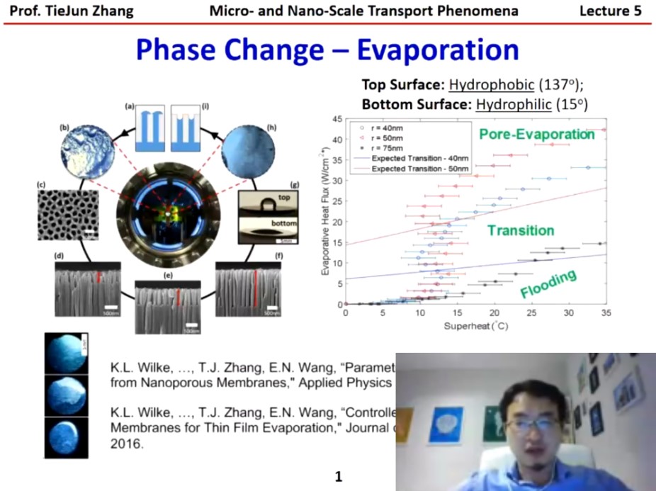 best365中国官方网站2017、2018、2019级三个年级及计算机学院2016、2018级共计五十多名学生参与了课程学习。在课程开始时,张老师给同学们分享了哈利法大学的基本情况和对学生的奖励制度等内容。接着张老师以丰富的图文向同学们介绍超疏水、超亲水等经典微纳现象,介绍了太阳能与水等自然资源的开采与利用背景、微纳米结构光学和润湿性强化界面传输的调控方法,并详细介绍了新型光谱选择性纳米复合材料太阳能吸收器、微/纳米工程蒸汽发生器和冷凝器的输运机理。