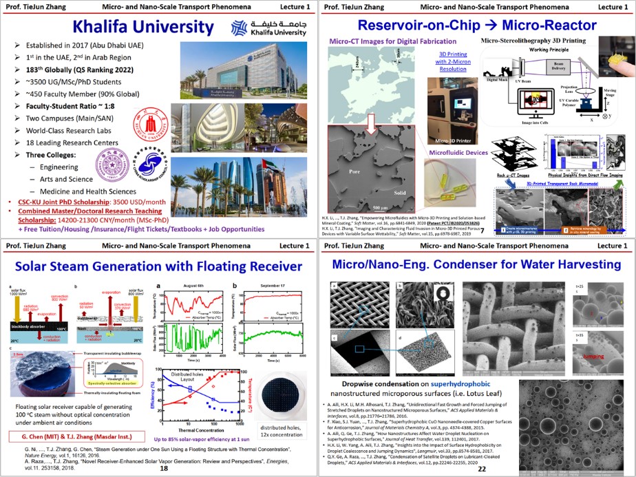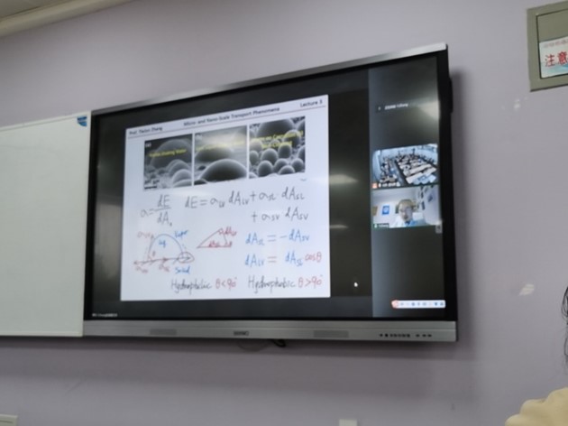 为扩大教育对外开放,满足后疫情时代大学生对全球优质教育资源的多元化需求,本次实践与国际课程周采用线上线下并行的授课方式进行。2021年7月5日,阿拉伯联合酋长国哈利法大学的张铁军教授受best365中国官方网站邀请,以线上授课的方式在江安校区一教C204开设了为期四天共16学时的全英文课程《Micro- and Nano-Scale Transport Phenomena》。