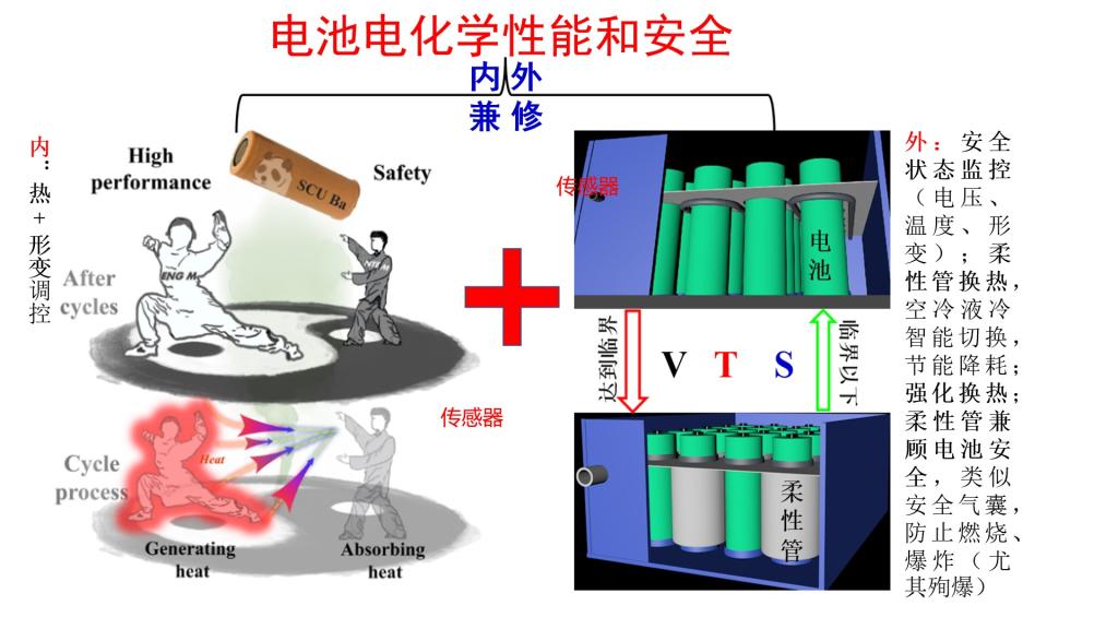 该一等奖获奖作品针对目前储能电站和电动车电池的性能与安全问题,设计并制作了相应的热管理控制体系模型。该作品依托于王贵欣老师的国家自然科学基金项目“负热膨胀陶瓷对氧电极反应的影响与催化失效修复改性机制研究(21978179)”,设计过程中综合考虑了电池内部材料性质、外部换热系统、事故预警和安全防护等多个问题,创新地采用了负热膨胀材料改性、安全状态监控、智能柔性管强化换热与安全防护集成等多种措施,成功建立了电池热管理模型。该设计的亮点之一就是选取了柔性管,可以随着温度变化改变换热面积。在电池过热的时候,可有效增大换热面积,实现换热过程强化,形成智能热管理体系。同时,在电池内部体积膨胀变化时,可巧妙地利用柔性管道的预紧与缓冲作用形成柔性保护区,有望解决电池过热和形变调控问题,提高电池的电化学性能和安全性能。辛炳儒等同学均表示通过本次比赛对过程装备与控制工程专业也有了更深刻的认识,希望学好专业课,为新能源领域的过程装备发展贡献自己的力量。
