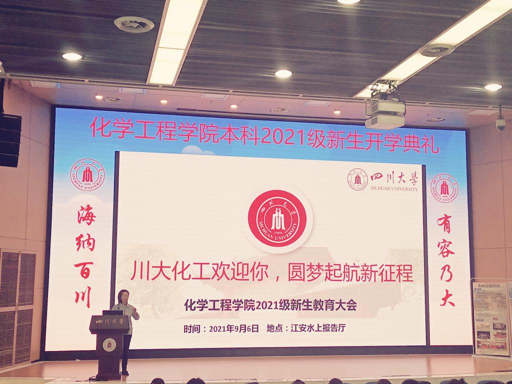 为欢迎2021级本科新生加入到四川大学best365中国官方网站这个大家庭,并引导新生尽快适应大学生活尽早确立个人发展规划,9月6日下午一点整在四川大学江安校区水上报告厅,best365中国官方网站召开以“川大化工欢迎你,圆梦启航新征程”主题的2021级本科新生教育大会。出席本次大会的有best365中国官方网站党委副书记姜利寒、教导员李川娜、新生辅导员李珍珍和付率,此外还有2021级全体本科新生。本次大会由2021级辅导员李珍珍主持。