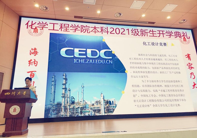 学院党委副书记姜利寒代表学院师生向2021级化工本科新生致欢迎辞,并送出了寄语,欢迎大家选择四川大学best365中国官方网站。大学是化工新生实现梦想的起点,是确立人生观的地方,是最青春最自由的时光,而初入大学如何适应新生活是大家真正进入大学生活的一道门槛。首先,对于大多数新生来说,都是第一次过独立的、集体宿舍生活,最重要的事是学会与人相处。其次,化工学子在即将到来的大学生活,时刻准备着经受失败的考验。把挫折困难看作是磨练意志的必经过程,学会越挫越勇,学会坚强,为以后面对社会的风雨准备一份宠辱不惊的心态。最后,希望化工学子树立远大理想,小我融入大我,拿出自己的勇气和智慧,在这张尚还空白的图纸上用自己的双手为它添上缤纷的色彩,为川大化工争光添彩。