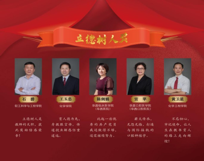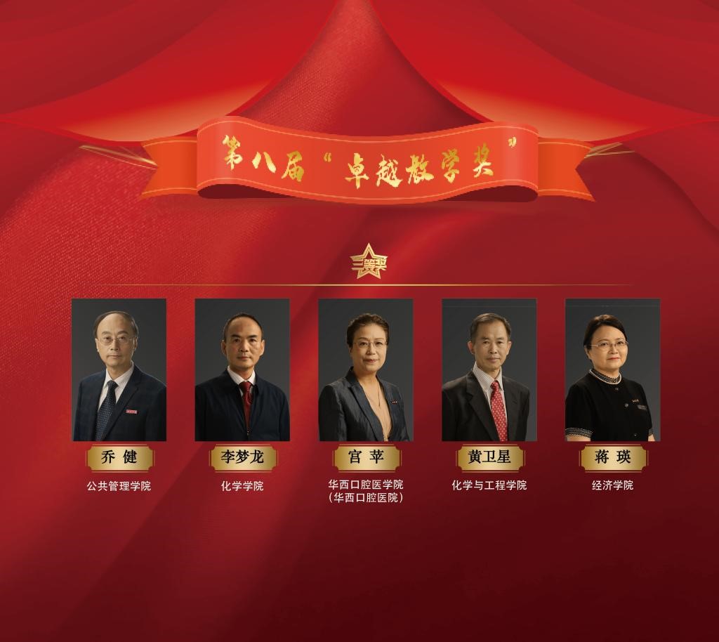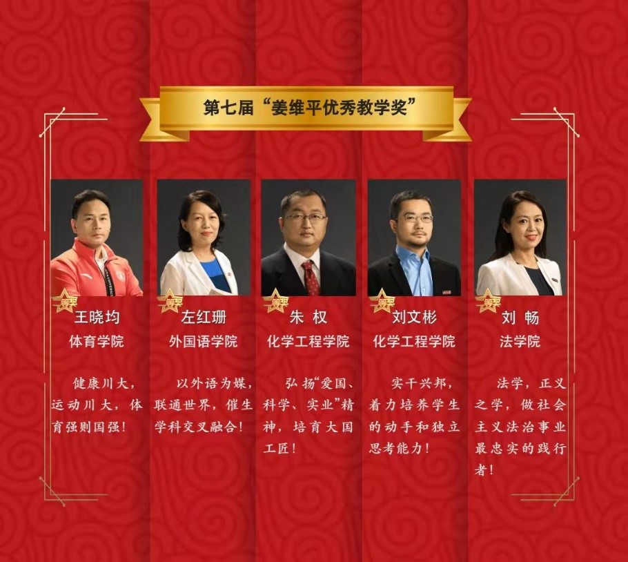 本次表彰会上,学院黄卫星教授获得第八届“卓越教学奖”和2021年四川大学“立德树人奖”,朱权教授和刘文彬副教授获得第七届“姜维平优秀教学奖”二等奖,李晓燕老师获得校2021年先进个人。