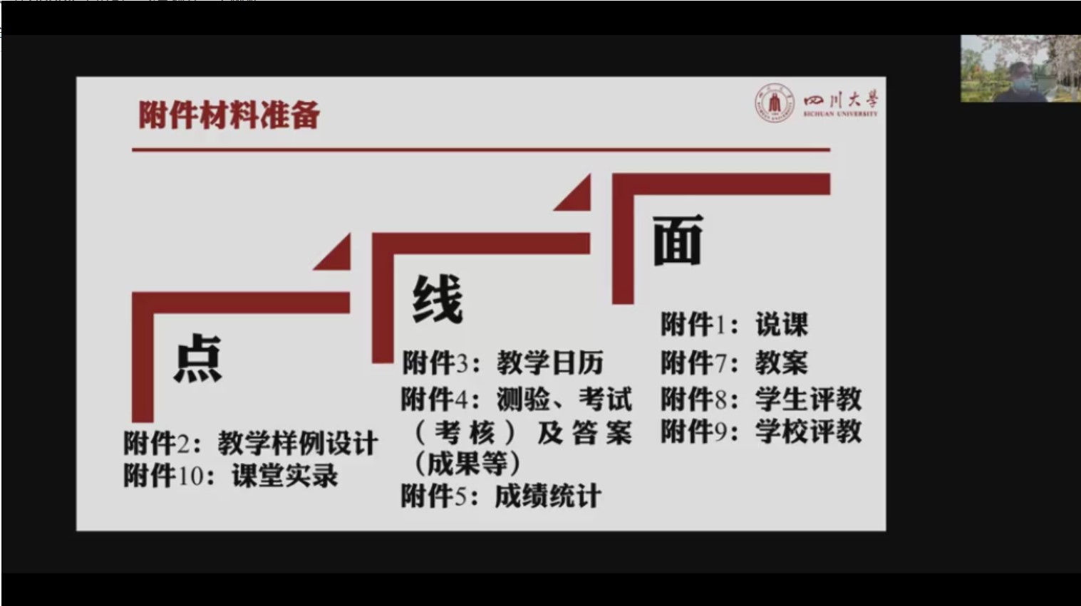 周加贝老师是四川省线上线下混合式一流课程《近代化学基础-无机化学及化学分析》的负责人,他分享的主题是《关于一流课程建设的思考》。他以四川省一流课程申报为例,从申报时间安排、申报书内容、说课拍摄、附件材料准备等方面介绍了一流课程申报的相关事宜。
