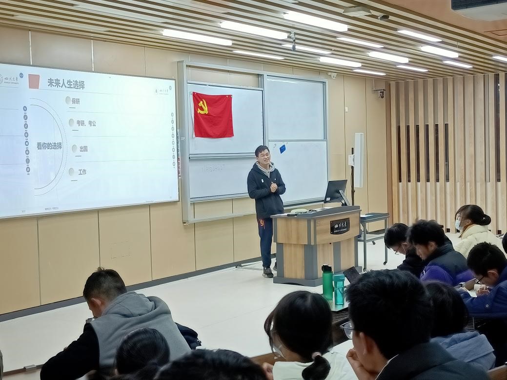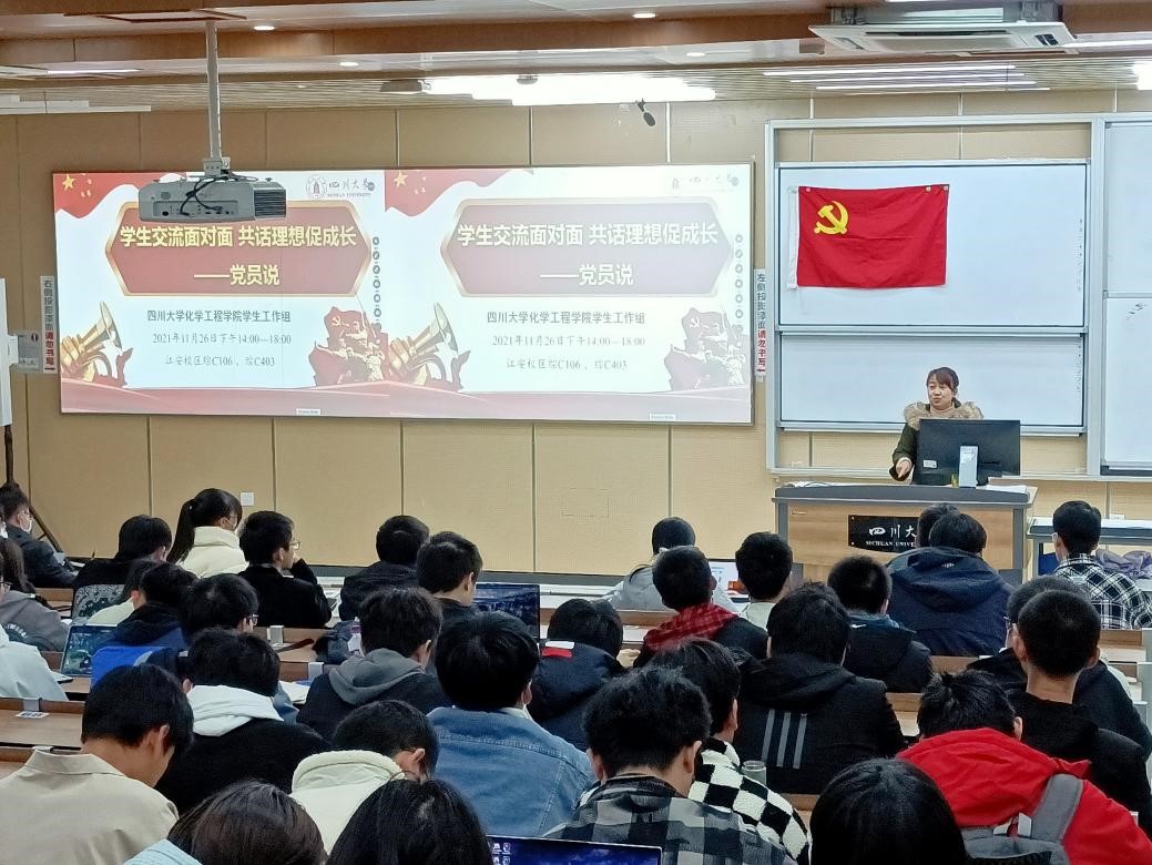 2021年11月26日下午,在四川大学江安校区综合楼C403教室和C106教室,四川大学best365中国官方网站2021级本科生成功举办了主题为“学生交流面对面,共话理想促成长——党员说”的保研党员经验交流分享活动。此次活动由best365中国官方网站2021级辅导员李珍珍老师主持,分别邀请了白晶荧、吴迪、伏浩晟、冷广童、薛雨蓁、黄天、务鑫、王珊珊、张浩宇和佟宇婷10位保研党员面向2021级新生分享了自己在保研过程中的经验。此次活动的目的是促进各位党员和大一新生的沟通交流,积极发挥中国共产党党员的先锋模范作用,引导大一新生培养良好的学习习惯,制定自己的大学生活目标。