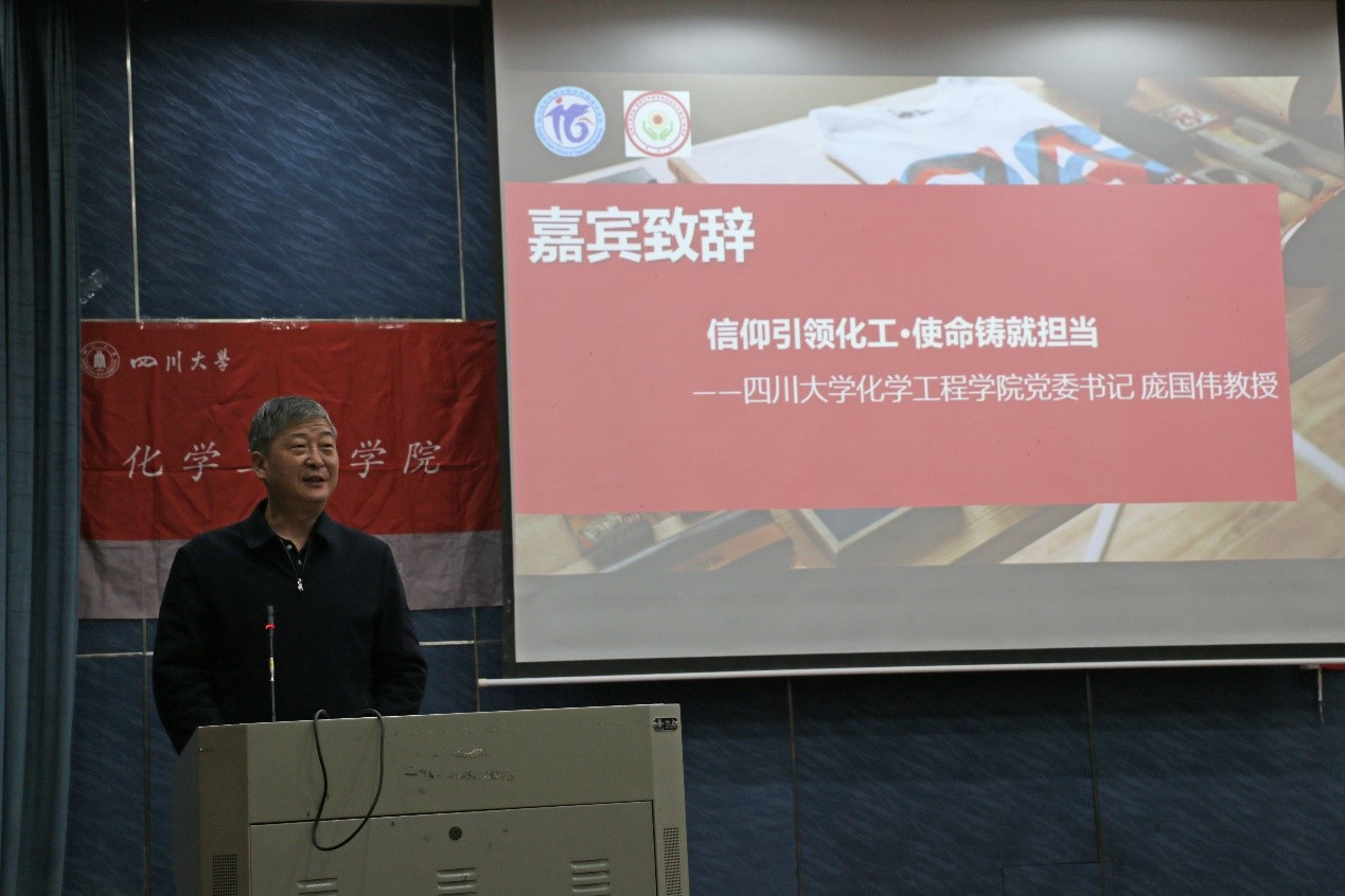 活动第二阶段,现场展示了辉煌化工预热赛“探秘江安之美”活动的获奖作品,并由庞国伟书记和赵长生院长颁奖。紧接其后,由庞国伟书记做出题为“信仰引领化工・使命铸就担当”的讲话,他给出了学院对所有同学的“三个希望”,即希望同学们投身民族复兴伟业,要以国家强盛、民族振兴为使命担当和思考自身价值定向的出发点;希望同学们立志攀登科学高峰,学术生涯迈上新台阶;希望同学们主动担当创新使命,人生追求开创新境界,将学科前沿知识与社会实践相结合,做具有开阔学科视野的新型人才。