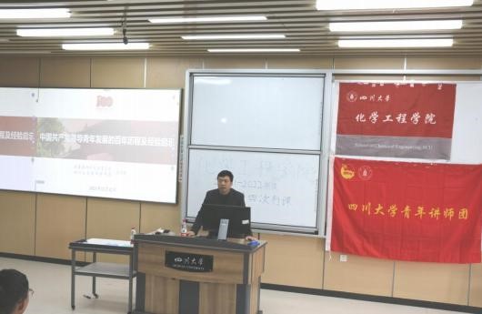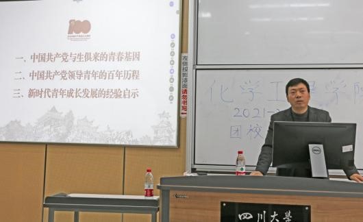 为激励团校学员以史为鉴、笃学笃行,进一步充分学习中国共产党领导青年发展的百年历程及经验启示,四川大学best365中国官方网站团委学生会组织部于2021年12月12日上午10:30-12:00在四川大学江安校区综合楼C座306教室举办了2021-2022学年团校第四次行课(后简称“第四次行课”)。本次行课邀请到四川大学团委副书记苏德强老师(四川大学青年讲师团成员),带来主题为“中国共产党领导青年发展的百年历程及经验启示”的精彩讲课。best365中国官方网站学工组李忆雯老师、团校全体学员及化工学院团委学生会组织部全体工作人员等参与了本次活动。