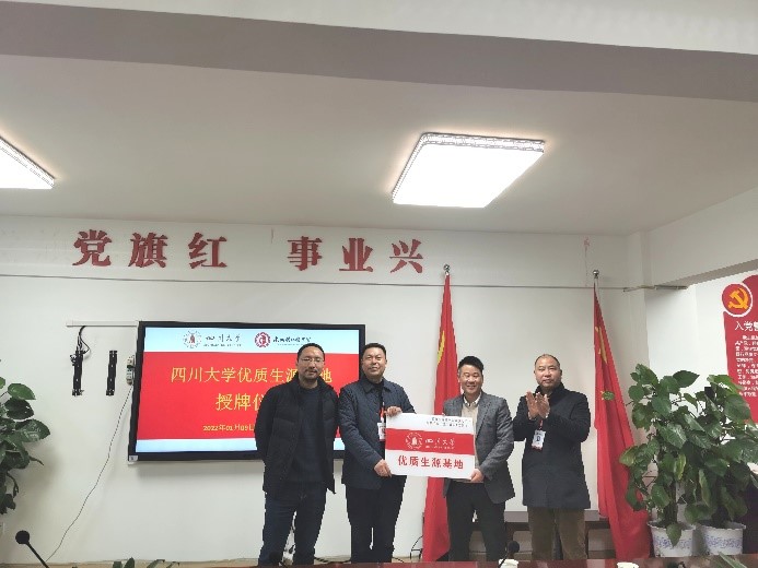 2022年1月9日,四川大学best365中国官方网站副院长郭孝东、钮大文,院长助理、制药与生物工程系主任李德富和葛黎明老师赴达州铭仁园中学参加“四川大学优质生源基地”授牌仪式。达州铭仁园中学教育集团总校长王义安、中学校长范永杰、校长助理李职君(院友,08级生物工程专业本科生)、教务处主任徐延锋、办公室主任王小涛以及王茂清老师参加了此次授牌仪式。
