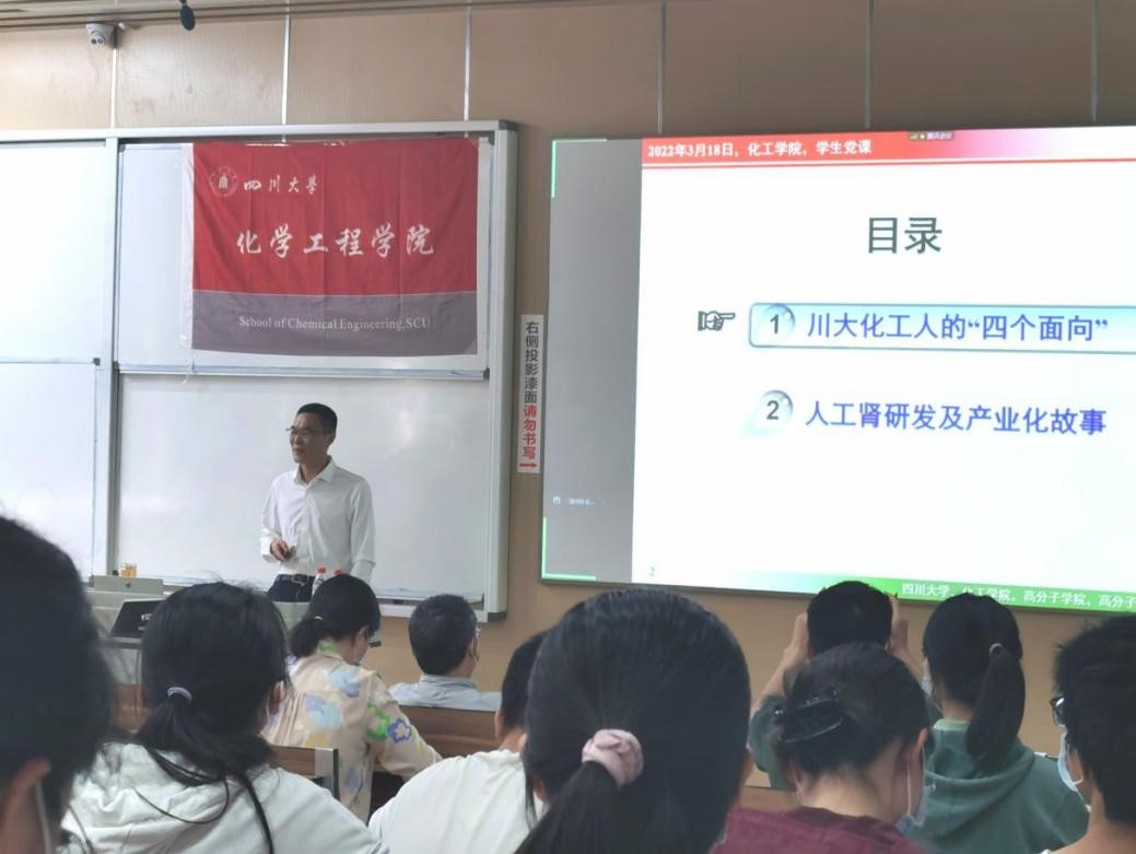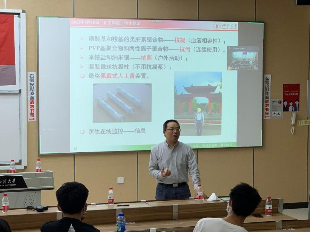 赵院长讲授完毕后,唐盛伟副院长肯定并高度赞扬了赵院长在“可穿戴式人工肾”研究上的付出与卓著成果,激励川大化工学子以赵院长为代表的上一辈化工人为榜样,积极践行习近平总书记对青年提出的要求,“在感悟时代、紧跟时代中珍惜韶华,按照党和人民的要求锤炼、提高自己,志存高远、德才并重、情理兼修、勇于开拓,在火热的青春中放飞人生梦想,在拼搏的青春中成就事业华章”。