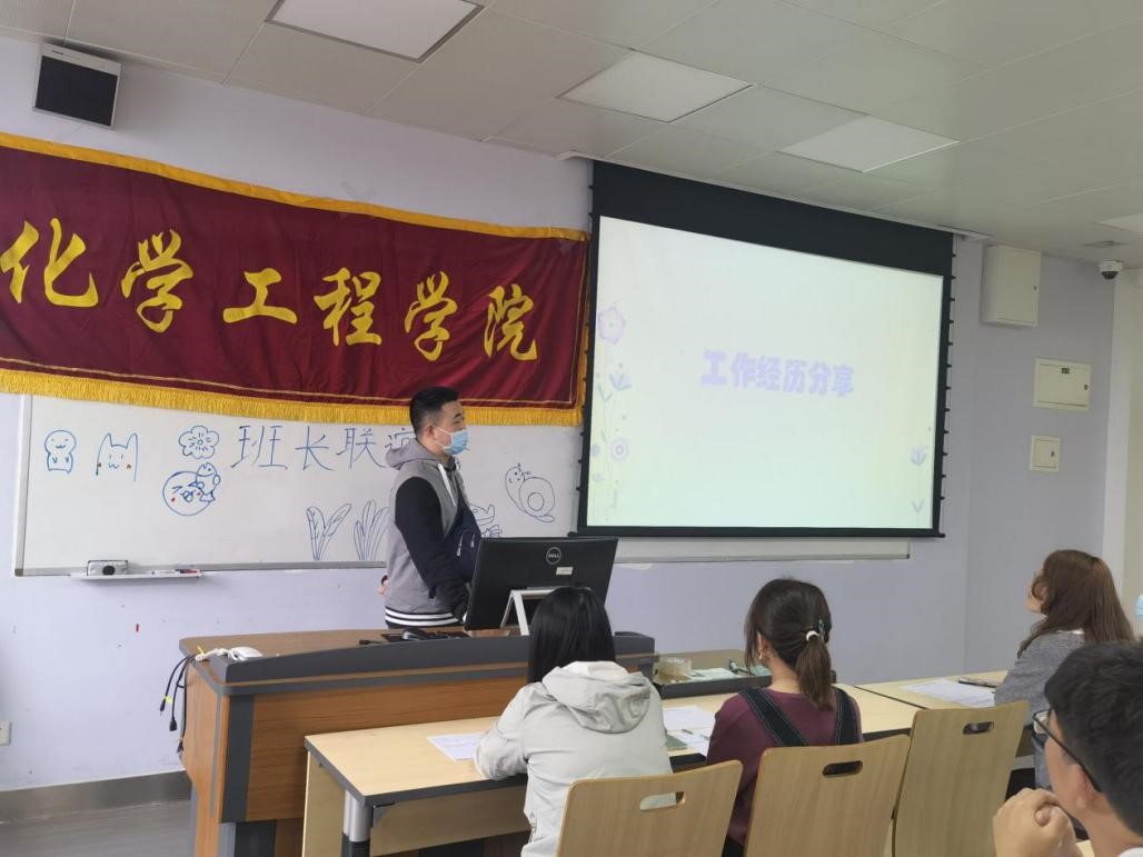 活动第二阶段,由2018级优秀班长黄天学长为大家分享自己在班级建设的过程中的经验与方法。黄天学长所在的工艺五班学习氛围浓厚,班级气氛活跃,全班保研率高达95%。黄天学长强调班长是一个服务与奉献性的岗位,在班级建设中起到带头领队的作用,要将班级班风的建设引向积极正确的方向;同时还强调到班级当中学习小组的作用——班级当中大家在学习上互帮互助,说出自己的疑惑或为别人解答疑惑,从而形成一个活跃的学习氛围。