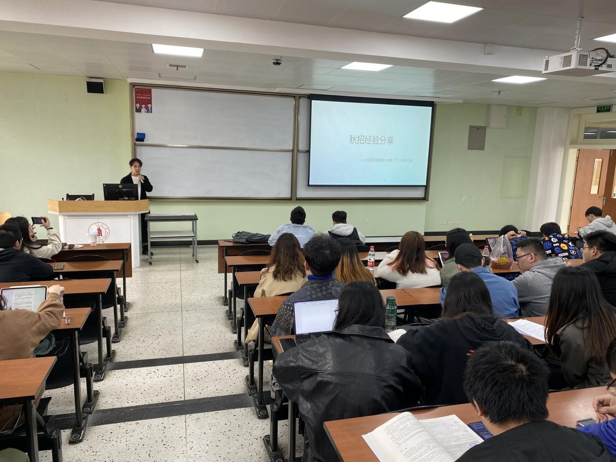 首先,2018级熊迎康、赵一蒋同学为大家分享了各自在去年秋招中的心得体会,他们从简历的制作、投递以及面试技巧等方面提供了较为详细的分享,鼓励同学们广泛投送简历以保证自主的选择权,并在面试中保持低调但自信的面貌,给面试官留下好印象。