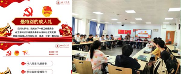 为了营造“喜迎建团一百年,青春献礼二十大,共贺建院七十年”的浓厚氛围,团结引领best365中国官方网站广大团员青年以昂扬的斗志和崭新的面貌“喜迎二十大、永远跟党走、奋进新征程”,best365中国官方网站团委于2022年4月22日下午14:00,在江安校区一教D206,开展“最特别的成人礼”主题团日活动。本次活动邀请了学院党委副书记姜利寒老师,校院关工委离退休老教师梁明征老师、傅运清老师、傅师申老师、李川娜老师、刘蓉生老师、侯筑老师、徐怡老师,学院杨谨瑗老师。此外,2021级所有团员骨干以及本科社区党支部党员同学共计37名学生参与,本次活动由2021级辅导员李珍珍老师主持。