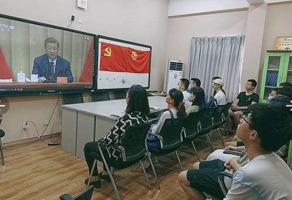 本次best365中国官方网站在江安校区以学院学工组三舍活动室为中心,以学生寝室为网格点,形成化工学子学习重要讲话精神的全覆盖学习网,来推进学生社区的精神引领阵地建设,激励广大化工团员学子在实现中华民族伟大复兴中国梦的新征程上奋勇前进。在学院学工组三舍活动室内,学院党委副书记姜利寒老师、辅导员司振兵老师、李珍珍老师、李忆雯老师以及数十名党员、团员代表,共同认真收听收看热烈庆祝中国共产主义青年团成立一百周年的直播活动。此外,很多学生纷纷自发在寝室内观看,累计参与达500余人次。
