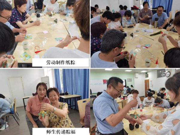 活动第一项,“文化自信•传承端午”。在此环节,学生通过竞猜积分的方式充分学习传统文化,自主了解端午节的别称、来历、风俗等。此外,张发和王丰同学也向大家分享了爱国诗人屈原的红色故事,师生的爱国主义精神再次得到了升华。活动第二项,“传递粽福•体验端午”。在此环节,学生在便签上写下最美的祝福,将其塞在纸制的福粽中,通过自己的劳动完成纸质祝福粽子后,现场送给其他师生。活动第三项,“热爱劳动•寻味端午”。在此环节,非常感谢教导员李川娜老师前期辛苦准备的包粽子所有的食材。首先是关工委老教师的实战教学——“万粽一心”包粽子,侯筑等老师将两片粽叶一叠、一卷,加入糯米、肉等馅料后一包、一扎,一个可爱又饱满的粽子就诞生了;然后每个小组推选出两位学生代表,完成“我的粽子我做主”实战包粽子比赛,在包粽子的过程中,各小组粽叶卷不好、包扎不紧、粽子露馅等问题层出不穷,乐趣多多。最后根据现场考核,大家一致认为所有参赛学生均表现优秀获得并列第一名的好成绩,同时杨光群老师也即兴发挥高歌一曲,将此活动推向高潮。活动第四项,“班风伴我行•学风助成长”。根据前期调研情况,班级学生普遍认为高数和物理课程学习比较困难,活动邀请杨光群老师和张慎语老师,给互联化工专业学生传授学习经验和方式。
