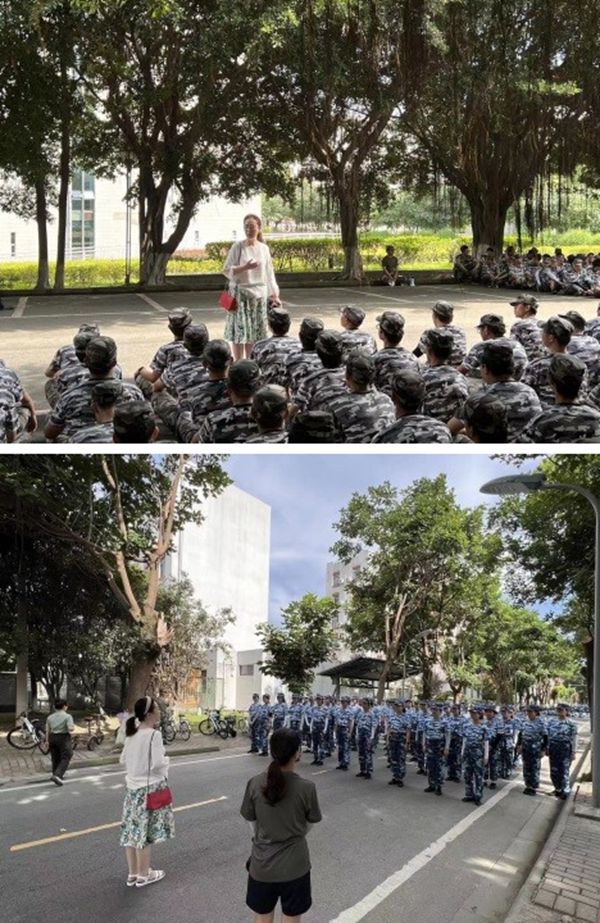 慰问过程中,姜利寒老师向正在辛苦训练的教官和学生们表示了亲切的慰问,并鼓励同学们要向教官学习,努力培养吃苦耐劳的精神。她希望同学们将军训中培养出的优良品质延续到今后的大学生活中,不畏艰辛,砥砺前行。同时希望同学们珍惜集体生活机会,用心感悟军训精神,增强组织纪律观念,将这门“军训”课,学出特色、练出本领。