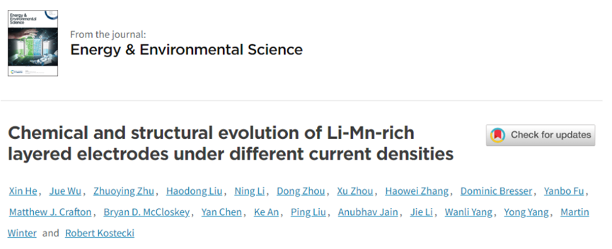 尽管富锂正极有着两种活性氧化还原中心,包括阴离子和阳离子贡献,可以使锂离子电池获得出色的比能量,但它们在不同电流密度下的行为尚未被阐明。近日,学院何欣研究员与美国劳伦斯伯克利国家实验室的Robert Kostecki通过研究不同电流下富锂中的渡金属(TMs)和氧的氧化状态,对他们的氧化还原活性进行比较研究,提出了从Li八面体到Li四面体的结构变化的详细机理,以及氧空位在Li+扩散中的作用。相关研究成果“Chemical and structural evolutions of Li-Mn-rich layered electrodes under different current densities”发表在材料领域国际期刊《Energy& Environmental Science》上,四川大学何欣研究员为本文共同一作和共同通讯,化工学院为本文第一作者单位。