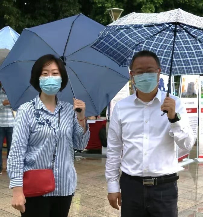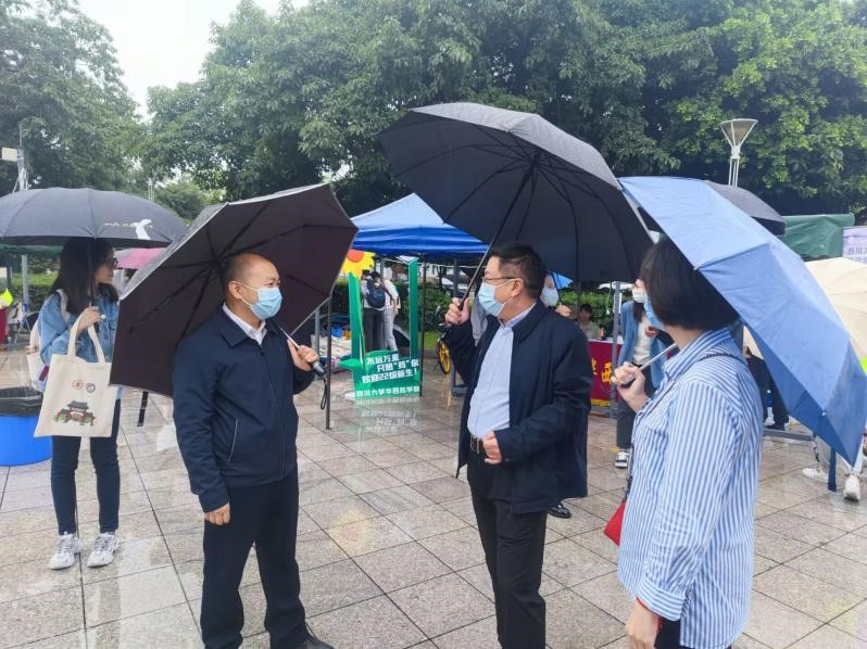 四川大学副校长梁斌(右)走访新生报到点