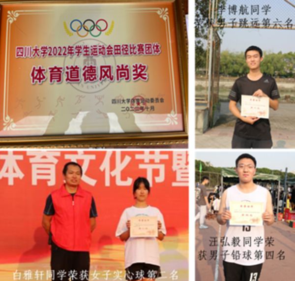 本次运动会我院荣获体育道德风尚奖,也凸显出化工学子良好的体育精神和道德风尚。此外,我院化工运动健儿们奋力拼搏之后,同样也收获了累累硕果,广播站传来声声捷报:李博航荣获男子跳远第六名;廖俣杰荣获男子原地掷实心球第八名;白雅轩荣获女子原地掷实心球第二名;汪泓毅荣获男子铅球第四名;沈宗楠荣获男子200米第十二名的好成绩。这些荣誉无形中增强了化工人挑战自我的信心与决心,更激发化工人拼搏进取的精神。