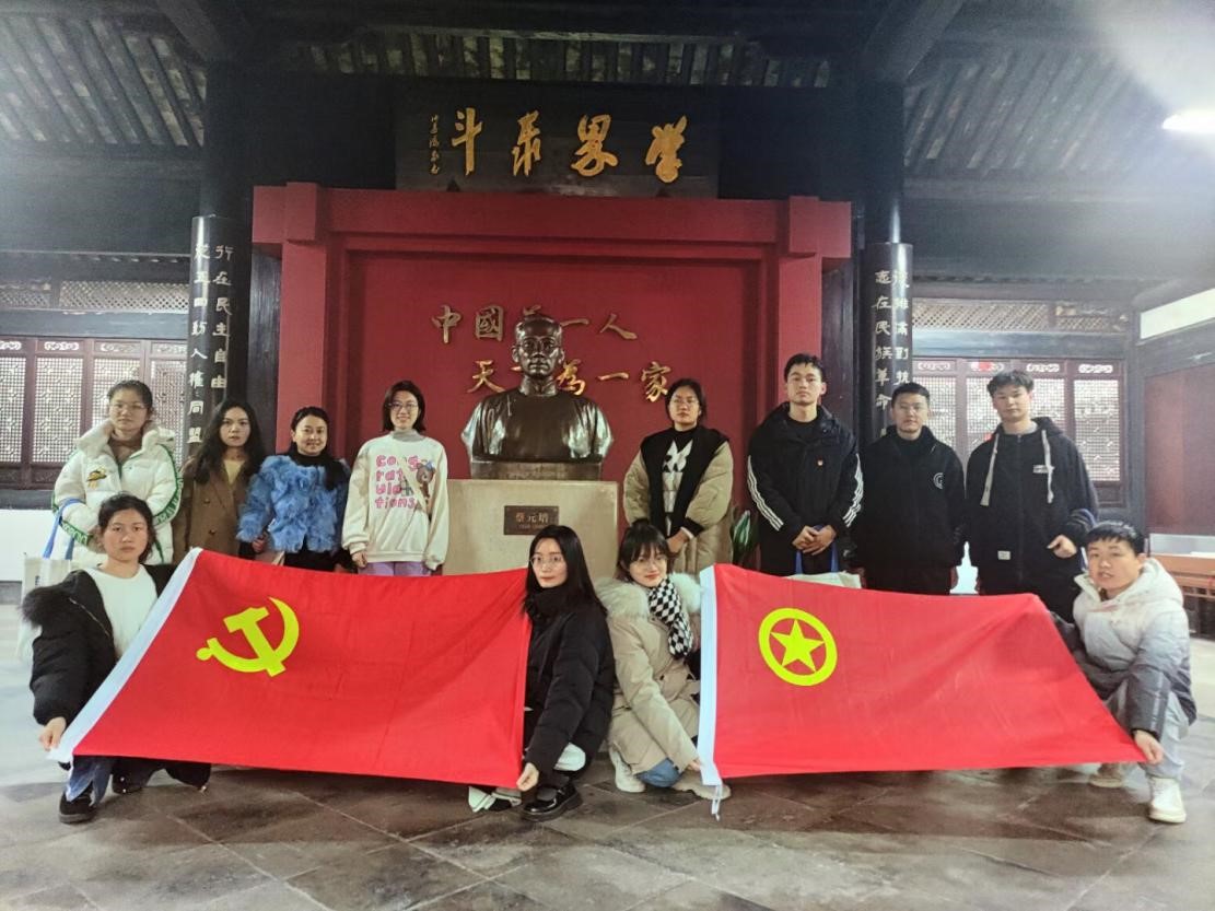 名人故居是绍兴的历史文脉和灵魂。越城一直以来是人文荟萃之地,有“鉴湖越台名士地”的美誉。为了弘扬中国优秀传统文化以及感怀先人为新中国所作出的奉献,2023年2月10日下午,四川大学best365中国官方网站“川山越海”红色先锋队,走进浙江省绍兴市越城区探访先人足迹。此次活动由学院分团委书记李珍珍老师、本科生辅导员袁玲老师、研究生辅导员李颖丽老师,还有9名硕士研究生及本科生代表共同参与。