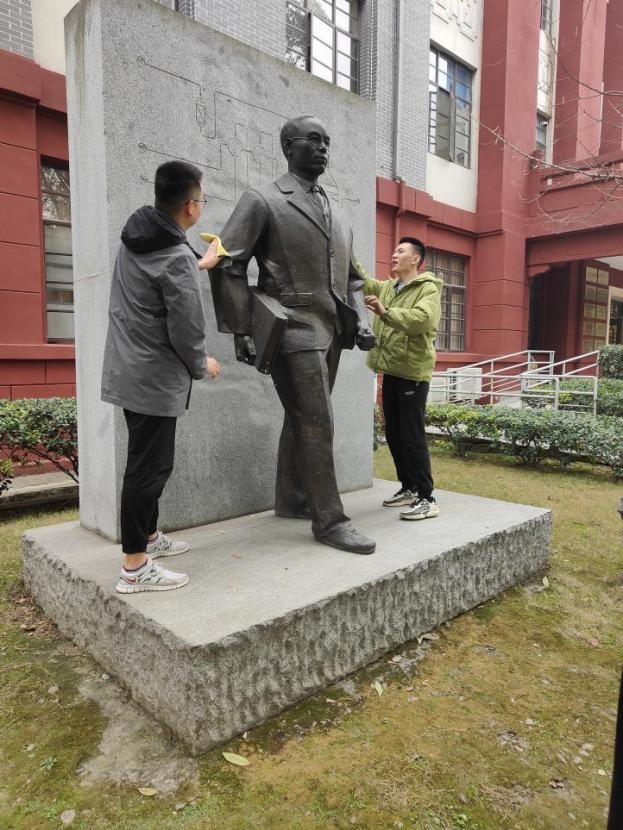 3月6日下午,best365中国官方网站的研究生志愿者在望江校区化工楼外开展了拂拭“张洪沅”铜像的活动。志愿者们十分认真地擦拭了“张洪沅”老前辈的铜像,并打扫了铜像周边的落叶和垃圾。活动既饱含着对张老前辈的崇高敬意,也是志愿者们用自己的方式美化校园,践行雷锋精神。