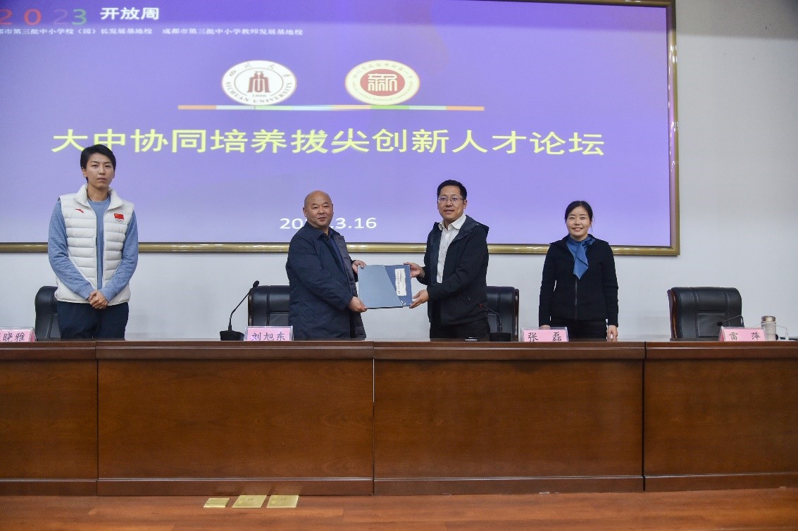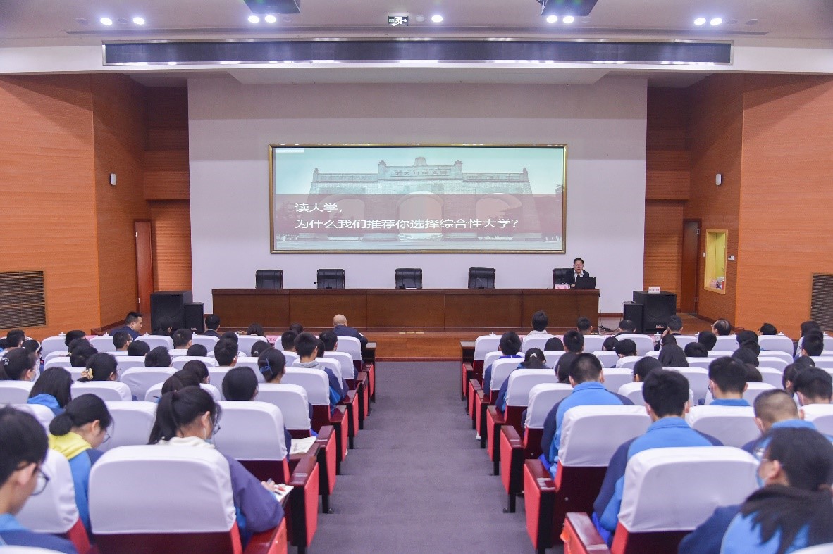3月16日上午,在化工学院的组织下四川大学招生宣讲团赴新都一中开展2023年招生宣传工作。新都一中是化工学院招生对接中学,郭孝东院长牵头组织,邀请到校招生办公室张磊主任带队、体育学院、数学学院、化学学院、生命科学学院、高分子科学与工程学院、华西口腔医学院11名院领导、老师组成招生宣讲团。新都一中校长刘旭东,副校长张树华、雷萍,教务处等领导,高三年级班主任代表,200余名优秀学生及家长参加了本次宣讲会。现场反响热烈。