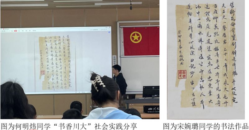 首先,由何明炜同学上台分享了“书香川大”社会实践,分享了许多鲁迅故居内的书法作品;接下来,由主持人白雅轩为我们展示了部分同学用毛笔书写的经典篇目,从这些书法作品中挖掘与诠释中华经典文化的内涵及现实意义,更加广泛深入地领悟中华思想理念、传承中华传统美德、弘扬中华人文精神,把学习中华传统文化融入日常、化作经常。