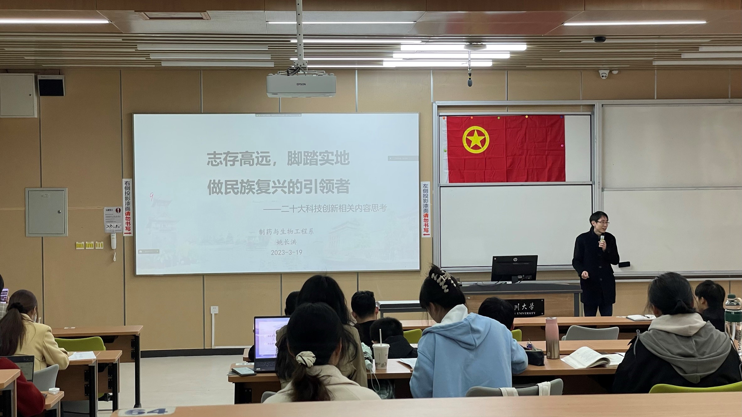 为促进团员青年深入学习宣传贯彻党的二十大精神,深刻领悟“两个确立”的决定性意义,不断增强“四个意识”、坚定“四个自信”、做到“两个维护”,2023年3月19日10:00,best365中国官方网站研究生2022级生物化工与技术团支部、研究生2022级化学工程专业2班团支部、本科2021级制药工程专业101班团支部和本科2021级生物工程专业401班团支部全体同学在江安校区综合楼C座C103教室开展了“坚定不移跟党走,青春践行二十大”主题团日活动。出席本次活动的嘉宾有:制药与生物工程系老师姚长洪、best365中国官方网站研究生2022级生物化工与技术团支部、研究生2022级化学工程专业2班团支部、本科2021级制药工程专业101班团支部以及本科2021级生物工程专业401班团支部全体同学。本次团日活动主要分为二十大心得分享接力说、雷锋精神代代传和“书香川大”展示三个部分。