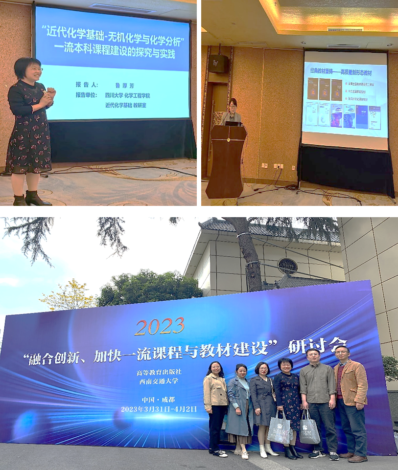 此外,西南科技大学、西南交通大学、成都理工大学的老师分别做了“普通化学一流本科课程及教材建设与应用”、“工程化学一流课程建设”、“大学化学公共基础课程建设实践”的报告,分享了各自课程建设的经验和成果。高等教育出版社编辑翟怡在“化学化工分社教学资源建设情况交流”报告中重点推介了由我们近代化学基础教研室主编、修订的“近代化学基础(第四版)-无机化学与化学分析分册”新形态教材。