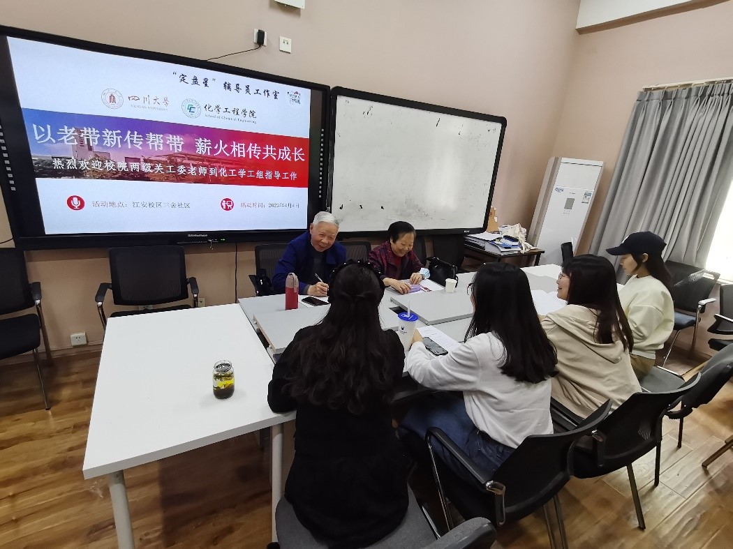 为进一步加强和规范青年辅导员的管理和教育培养,优化辅导员师资队伍,促进思政教师互相学习、教学相长的氛围,同时发挥校院两级关工委老教师的传、帮、带的积极作用,四川大学“定盘星”辅导员工作室,于2023年4月4日下午,邀请校院两级关工委梁明征老师、傅运清老师,走进best365中国官方网站学工组所在的三舍社区,开展“以老带新传帮带 薪火相传共成长”交流座谈会。