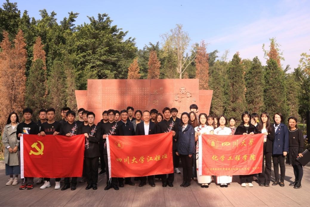 为弘扬先烈红色精神,赓续红色血脉,厚植爱国情怀,深入学习贯彻党的二十大精神,培养同学们的家国情怀和历史使命感,2023年4月4日上午,学校在江安英烈广场举行了清明祭奠活动,副校长梁斌、学工部和校团委等其他部处负责人、各学院师生代表在此向革命先烈致敬。学院党委副书记姜利寒带领学院师生代表参加了此次活动:辅导员李珍珍和雷金凤、本科社区党支部和本科雏鹰党支部党员、“习新会”社团成员以及四川大学“江姐班”2021级互联化工501班学生。