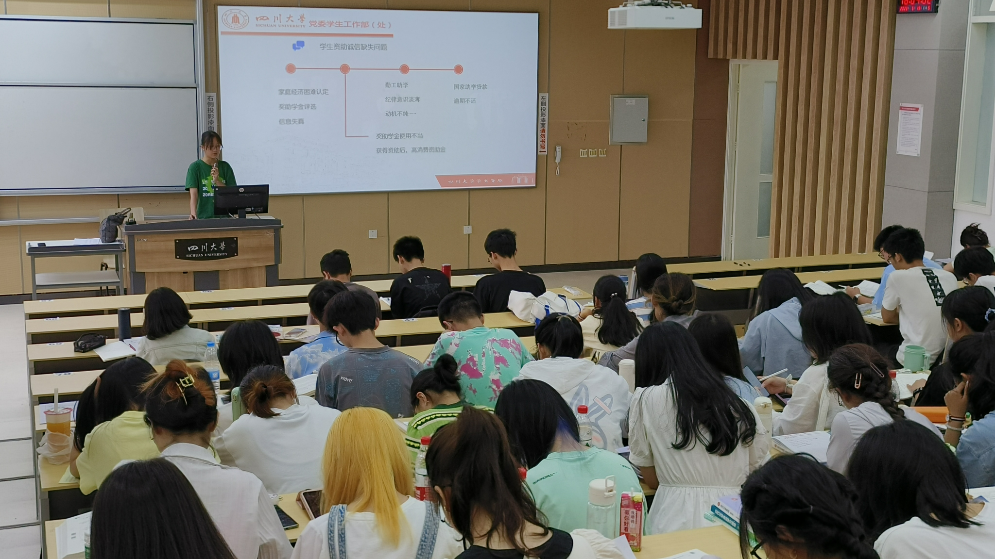 宣讲结束时,李忆雯老师又再次向同学们强调了诚信的重要性,以及资助诚信的必要性。同时也提醒同学们增强对四川大学学生资助项目的了解,号召大家提高自己在资助方面的诚信意识。
