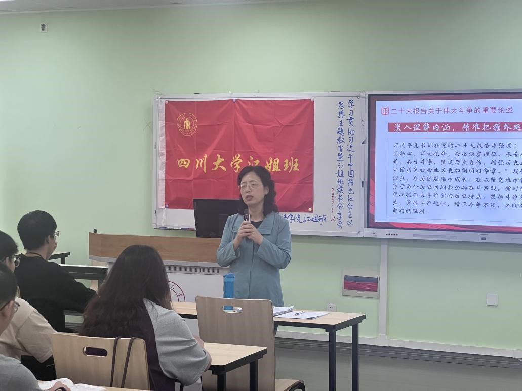2023年5月26日,为深入学习贯彻习近平新时代中国特色社会主义思想,进一步加强学校江姐班红色思想理论建设,促进江姐班学生沟通交流,best365中国官方网站与经济学院江姐班于四川大学江安校区综合楼B510开展学习贯彻习近平新时代中国特色社会主义思想主题教育暨江姐班读书分享学习会。与会人员有马克思主义学院黄丽珊老师、两学院江姐班学生。