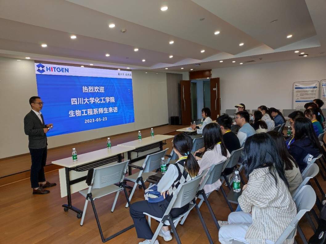 四川汇宇海玥医药科技有限公司作为一家制药公司发展迅速。旗下生产各类抗肿瘤仿制药,同时自行开发创新抗肿瘤新药,利用双靶点克服抗肿瘤药物耐药性,负责人详细地为我们介绍了抗体药物的开发流程。同学们在这里学习到新知识的同时,也了解到了目前药物市场的情况,拓宽视野。