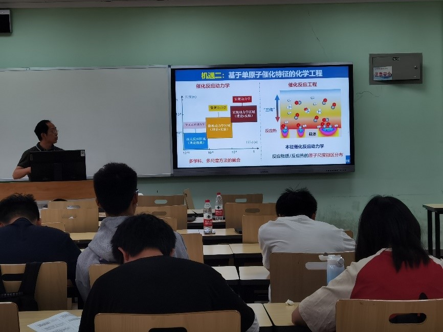 中科院大连化学物理研究所航天催化与新材料研究中心、中国科学院航天催化材料重点实验室杨小峰研究员为同学们作了《催化的魔力:从航天应用到单原子催化》的学术报告,从实验室强大的科研团队到该领域发展的众多机遇,为同学们描绘出一幅精彩的科研画卷。