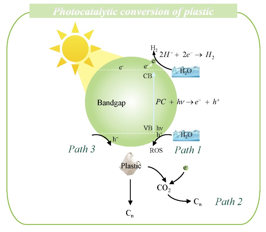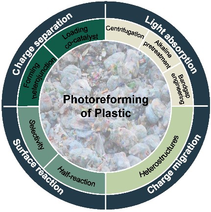 塑料是一种广泛使用的工程材料,但也带来了严重的环境问题。只有很小部分被回收,大部分被填埋或焚烧,造成土壤、水和空气污染。光重整技术利用光照可以将塑料废物转化为高附加值的氢气和低碳链有机物(Cn),具有低成本、低能耗和低碳排放等优点。近日,化工学院2020级本科生汤鑫在化工三大顶刊之一Industrial & Engineering Chemistry Research上发表了题为“Recent Advances in the Photoreforming of Plastic Waste: Principles, Challenges, and Perspectives”的综述论文。四川大学化工学院周雪梅特聘研究员和高分子研究所特聘副研究员贺丽蓉为该论文通讯作者。该文章综述了近年来光重整(Photoreforming,PR)塑料制取氢气反应的热力学和动力学原理,并总结了提高PR反应效率的方法,同时综合总结了近年来PR技术的最新进展;并讨论了大规模反应器的应用及优缺点。
