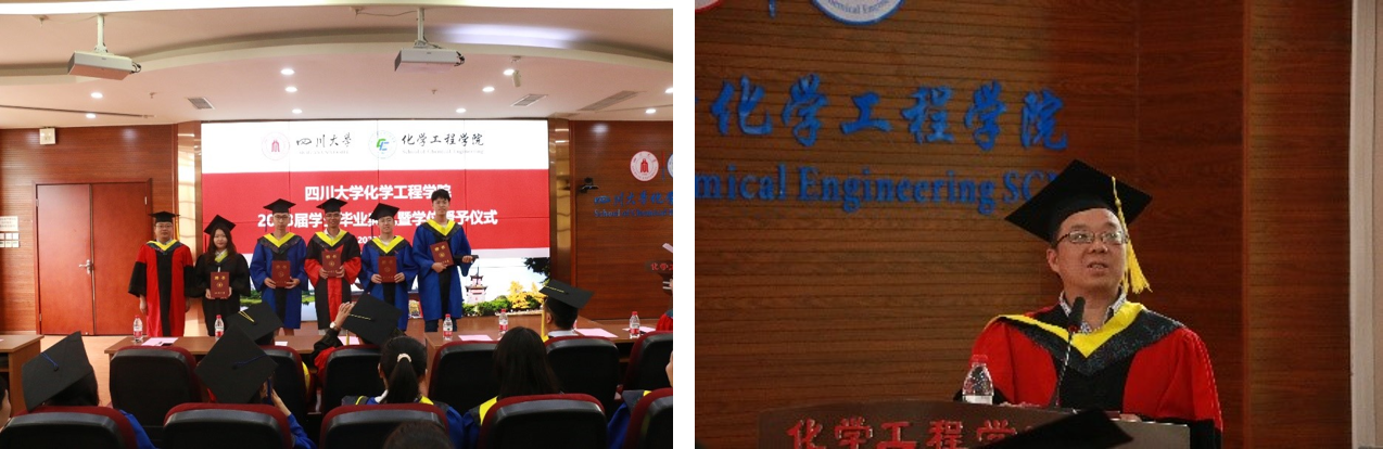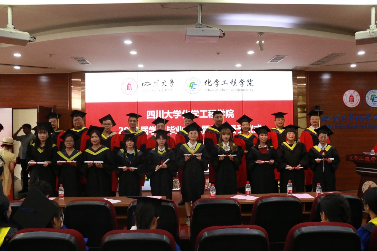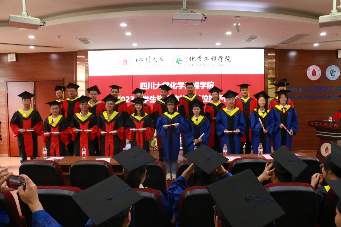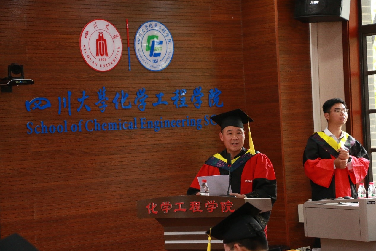 2023年6月27日,四川大学best365中国官方网站2023届毕业典礼暨学位授予仪式在望江校区化工学院楼313报告厅隆重举行。学院党委书记李天友、院长郭孝东、副书记李德富、副院长唐盛伟、副院长钮大文、工会主席穆畅道、过程装备与安全工程系主任伍勇、国家工科基础课程化学教学基地主任朱权、化学工程系副主任党亚固、制药与生物工程系副主任刘文彬、学生教导员李川娜老师、本科生辅导员老师帕哈尔定,研究生辅导员老师李颖丽,四川大学best365中国官方网站2023届毕业生和部分家长代表出席典礼,典礼由学院党委副书记姜利寒主持。