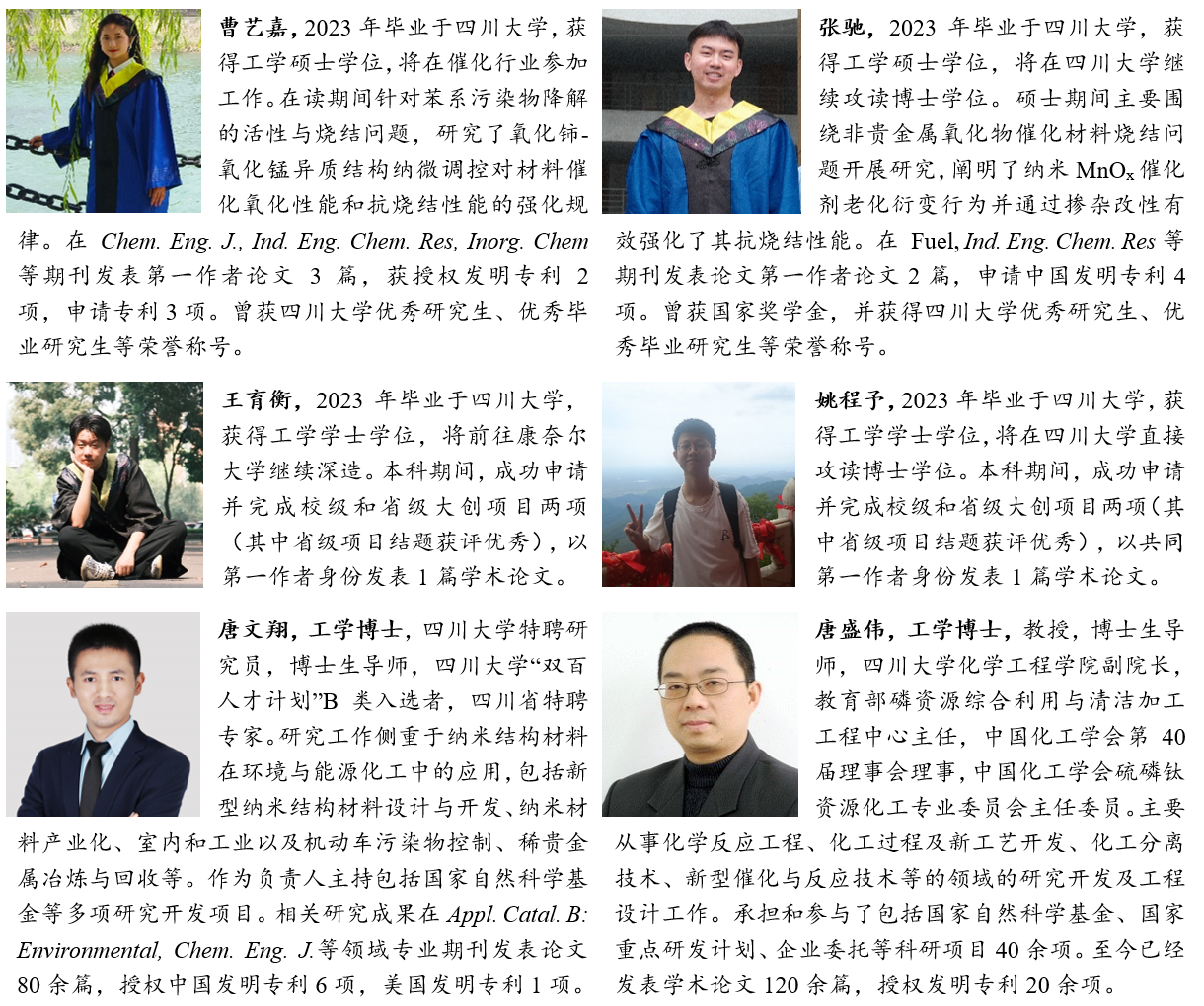系列成果四川大学为第一通讯单位,化工学院唐文翔研究员为通讯作者,2023届硕士生曹艺嘉、张驰,2023届本科生王育衡、姚程予为主要完成人。特别感谢国家自然科学基金、四川大学双百人才计划、四川省海外青年人才项目支持。