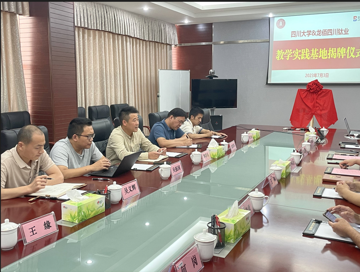 2023年7月3日,为深入推进校企合作、促进四川大学best365中国官方网站学生提升工程实践能力,在学院李天友书记、李德富书记等前期协调组织下,我院院长郭孝东、化工系主任袁绍军、实训教研室主任吴振国以及教研室老师唐文翔、吴义辉、王缘一行赴四川德阳绵竹新市,与当地优秀企业龙佰四川钛业和川发龙蟒举行“教学实践基地” 揭牌仪式。