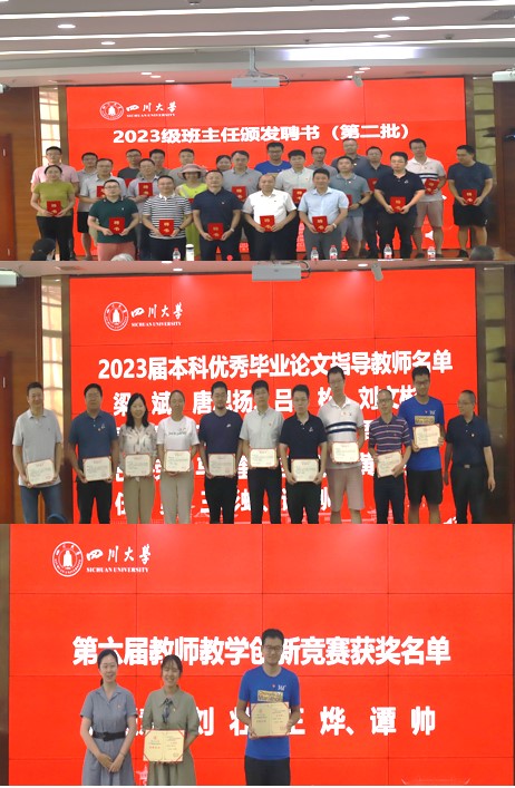随后,学院领导向2023级本科班主任颁发聘书,向2023届本科优秀毕业论文指导教师、教师教学创新竞赛获奖教师颁发了荣誉证书。