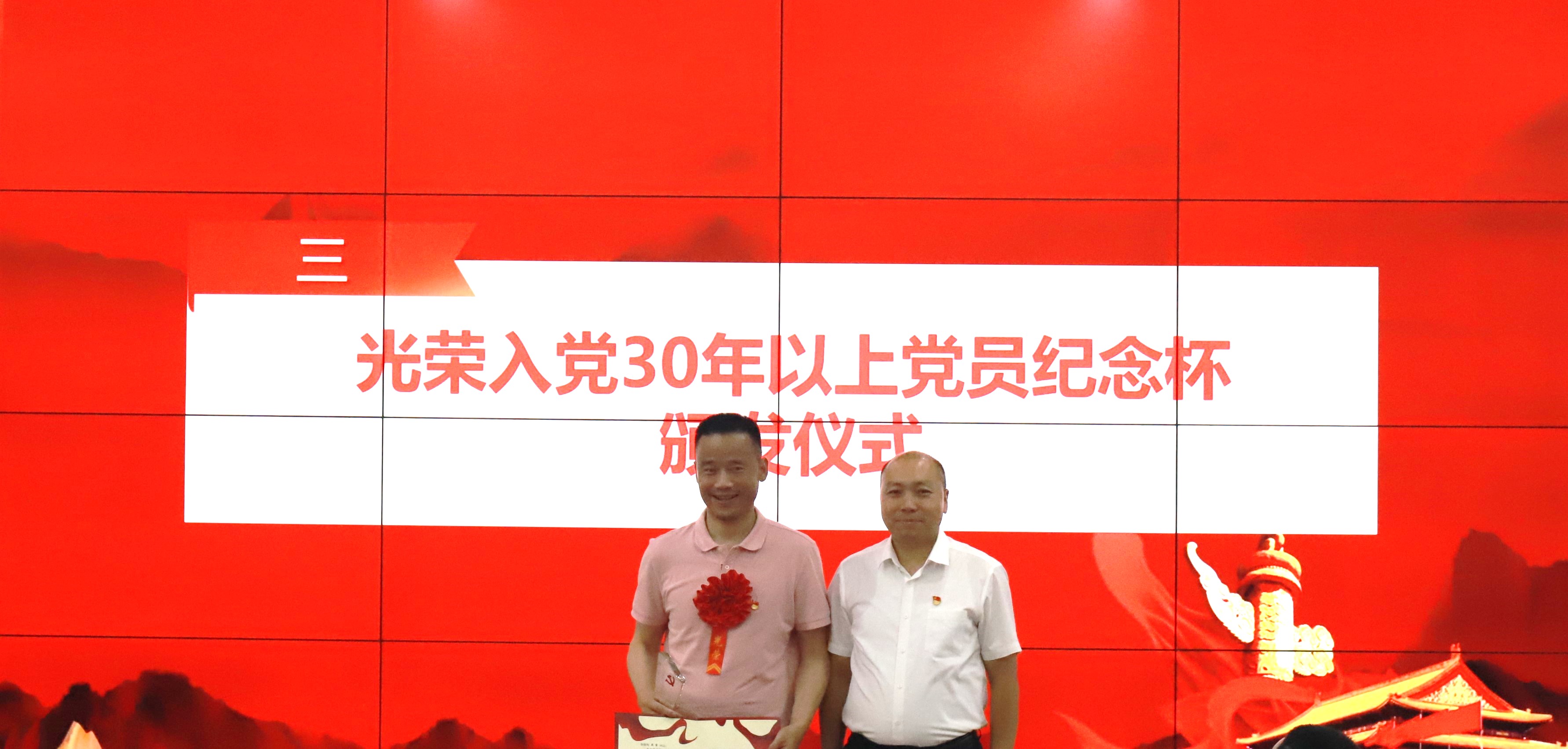 随后,大会举行了“光荣在党30年”纪念活动。学院党委书记李天友为党龄满30年的周密老师颁发了纪念牌。